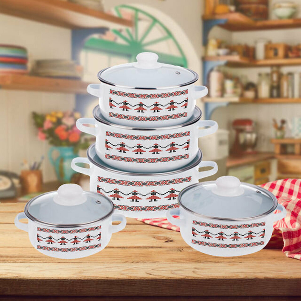 Set 10 Piese Oale Emailate cu Capac - Model Traditional Bucovina - OER0139