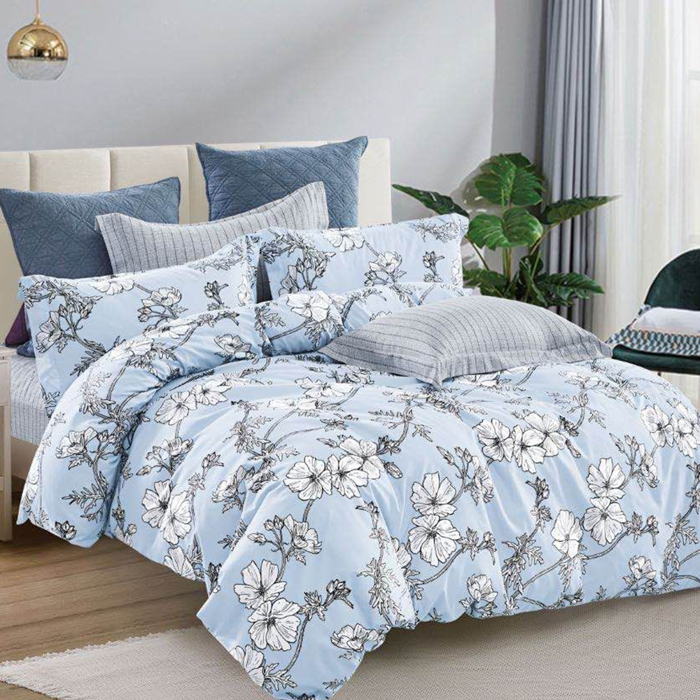 Lenjerie Bumbac Satinat Albastru Deschis Flori LBD0373