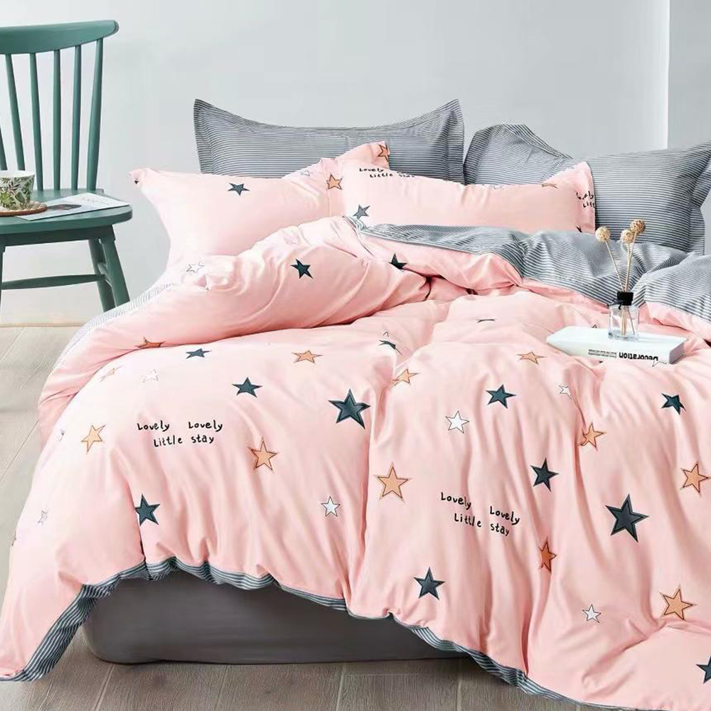 Lenjerie Bumbac Satinat Roz Stelute Mici LBD0318