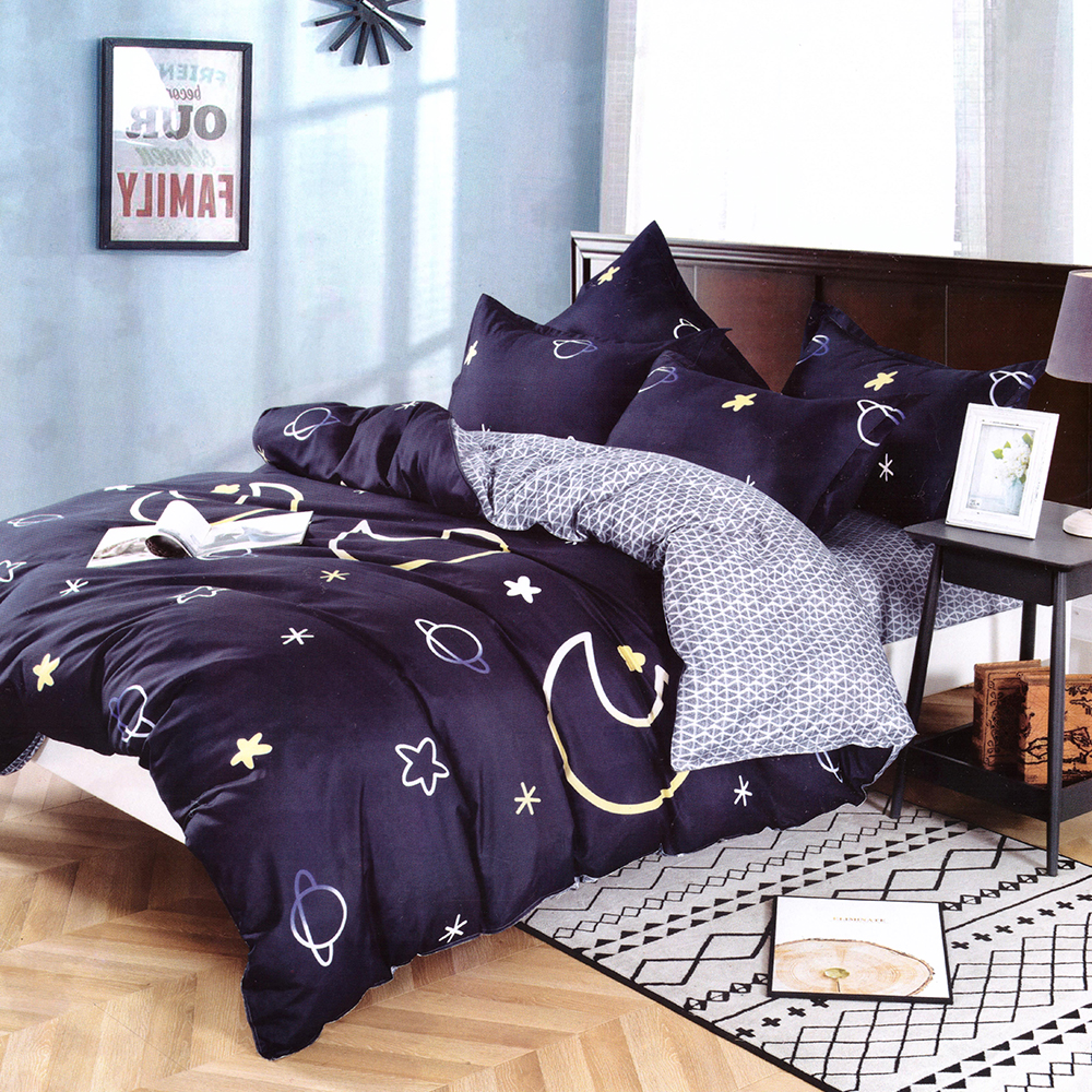 Lenjerie de pat 2 persoane (4 piese) confecționată din bumbac satinat de calitate superioară, foarte plăcut la atingere. Datorită amestecului optim de bumbac finet subțire și satin, această lenjerie asigură confort sporit prin textura sa moale și fină. Aspectul satinat al acestei lenjerii oferă eleganță și rafinament dormitorului. Cele 4 piese cu imprimeu modern sunt croite pentru a se potrivi patului tău matrimonial. Cearceaful de pat din set este prevăzut cu elastic pe toate laturile, lucru care face ca acesta să stea fix pe saltea, fără să se miște.
