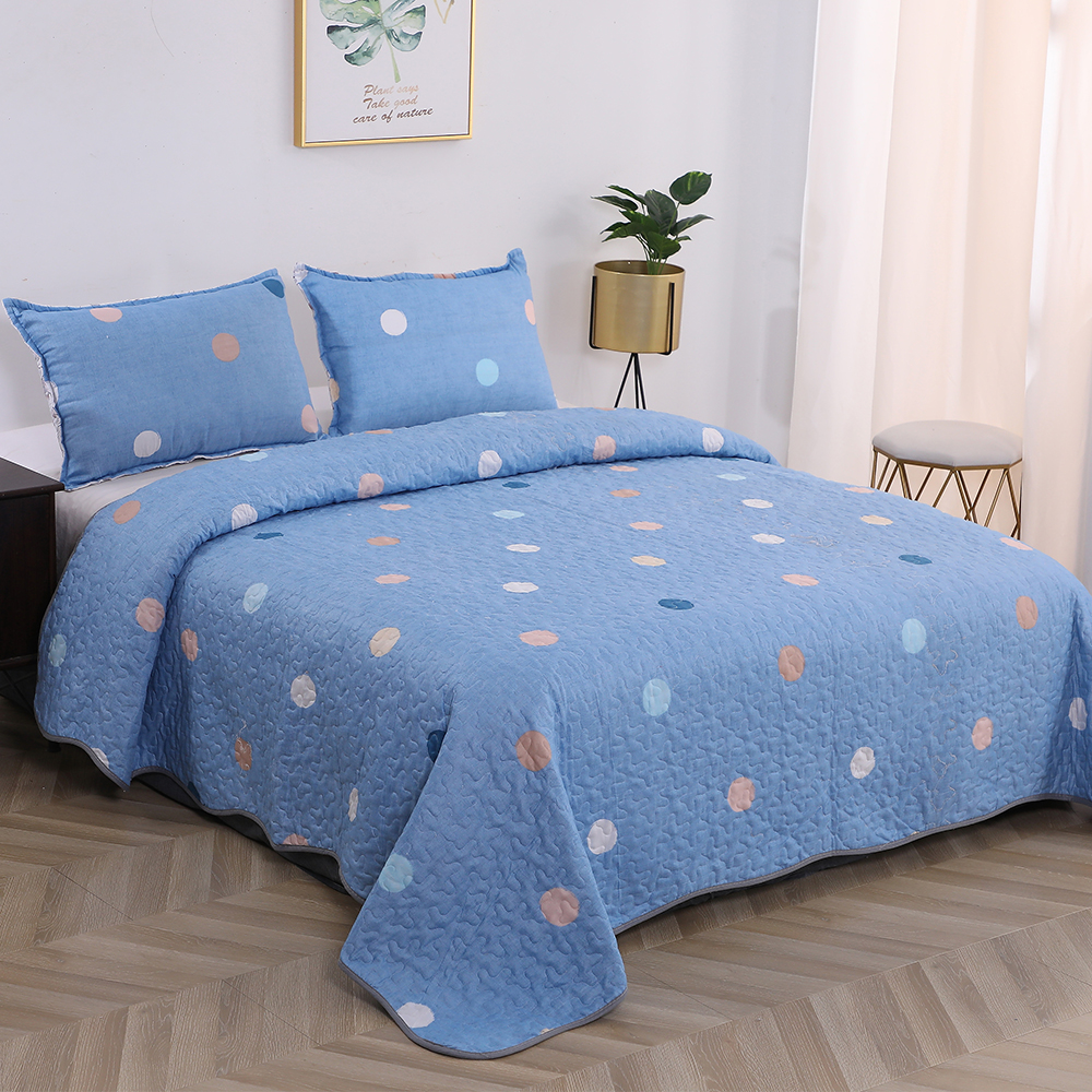 Set Cuvertura de Pat DUO + 2 Fete de Perna - Albastru Buline - CVBS063B